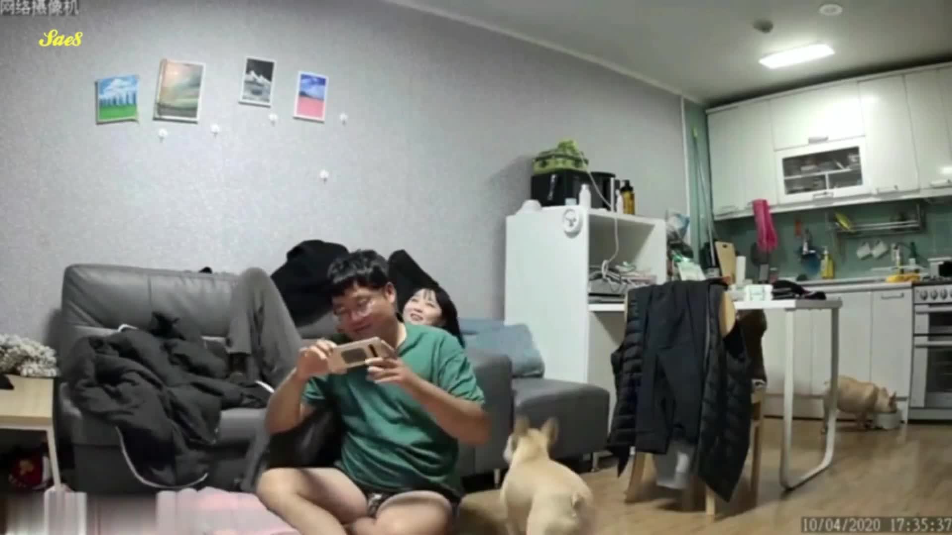 黑客入侵家庭摄像头监控偷拍骚妇在家偷汉家里小狗看呆了。