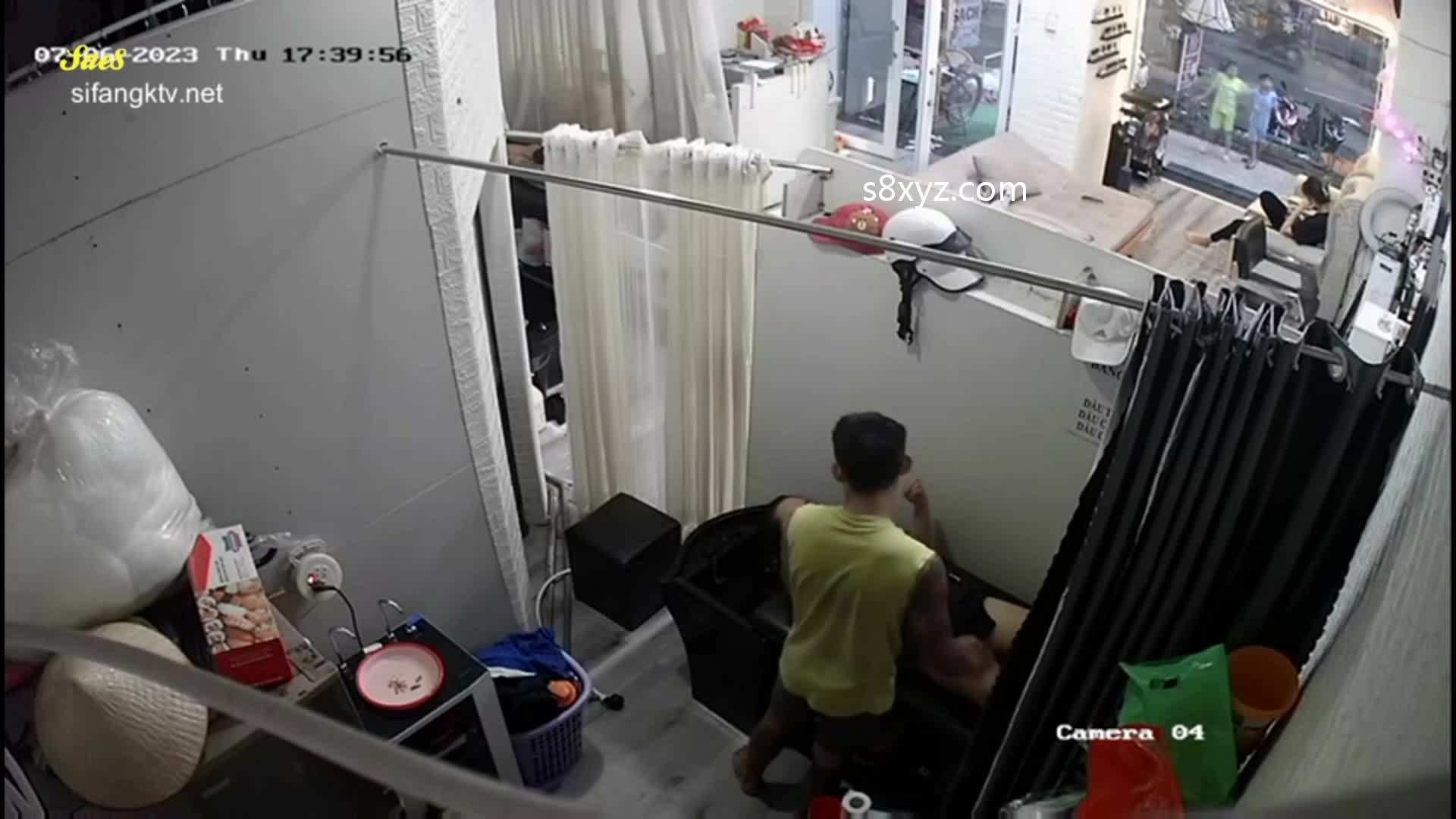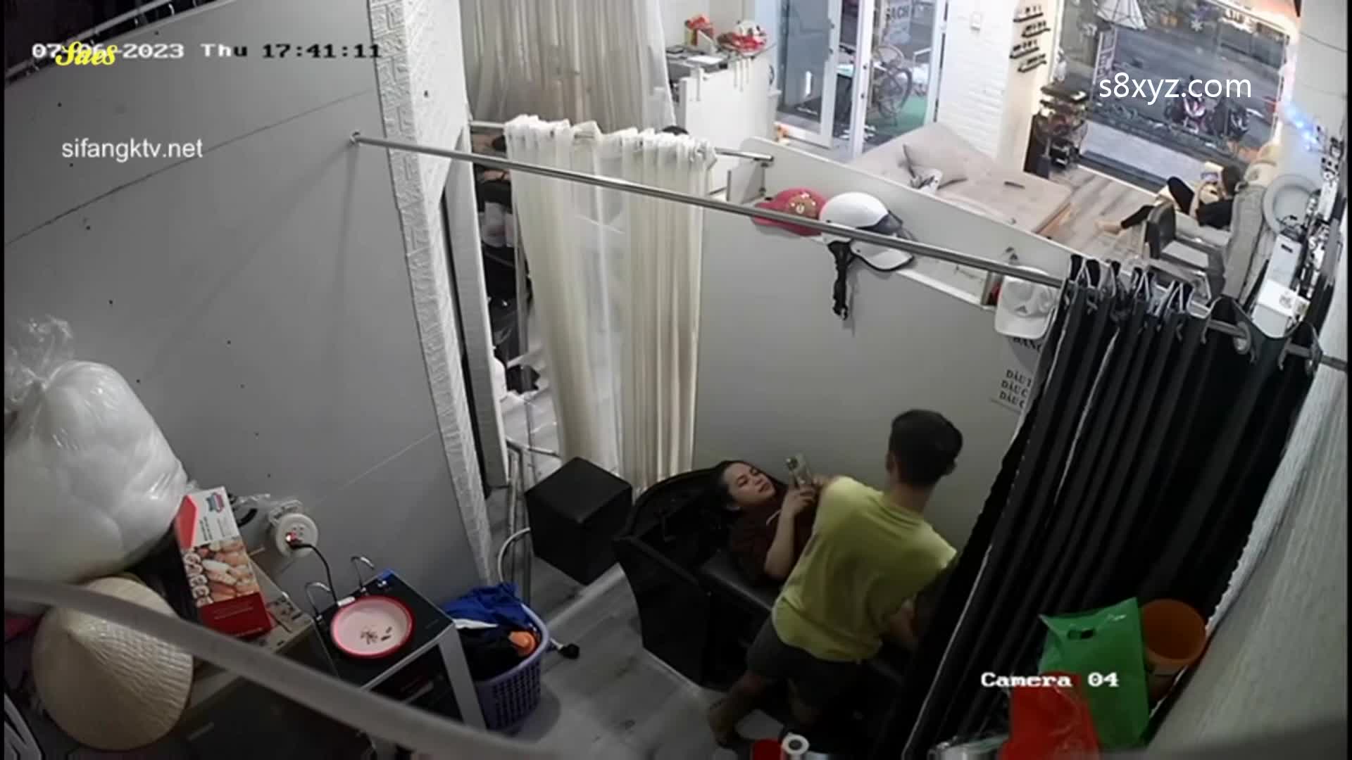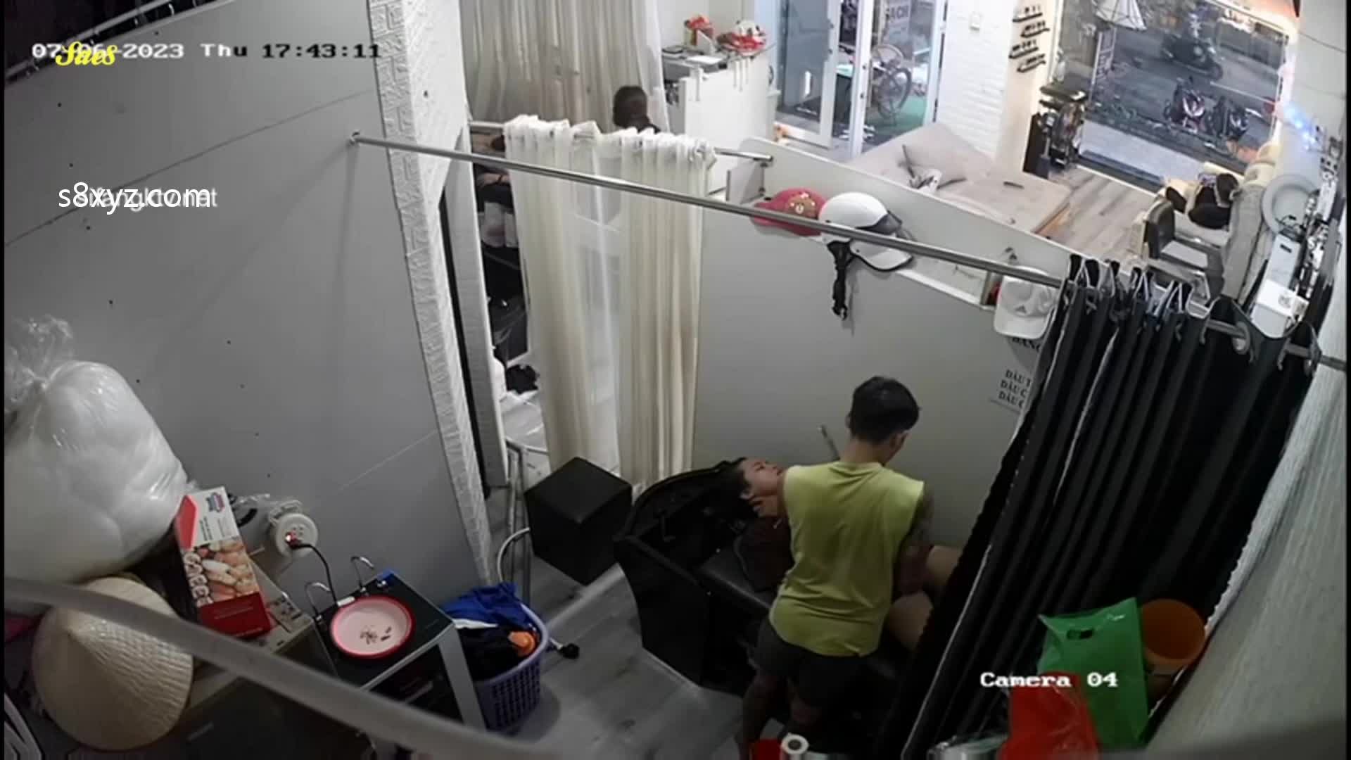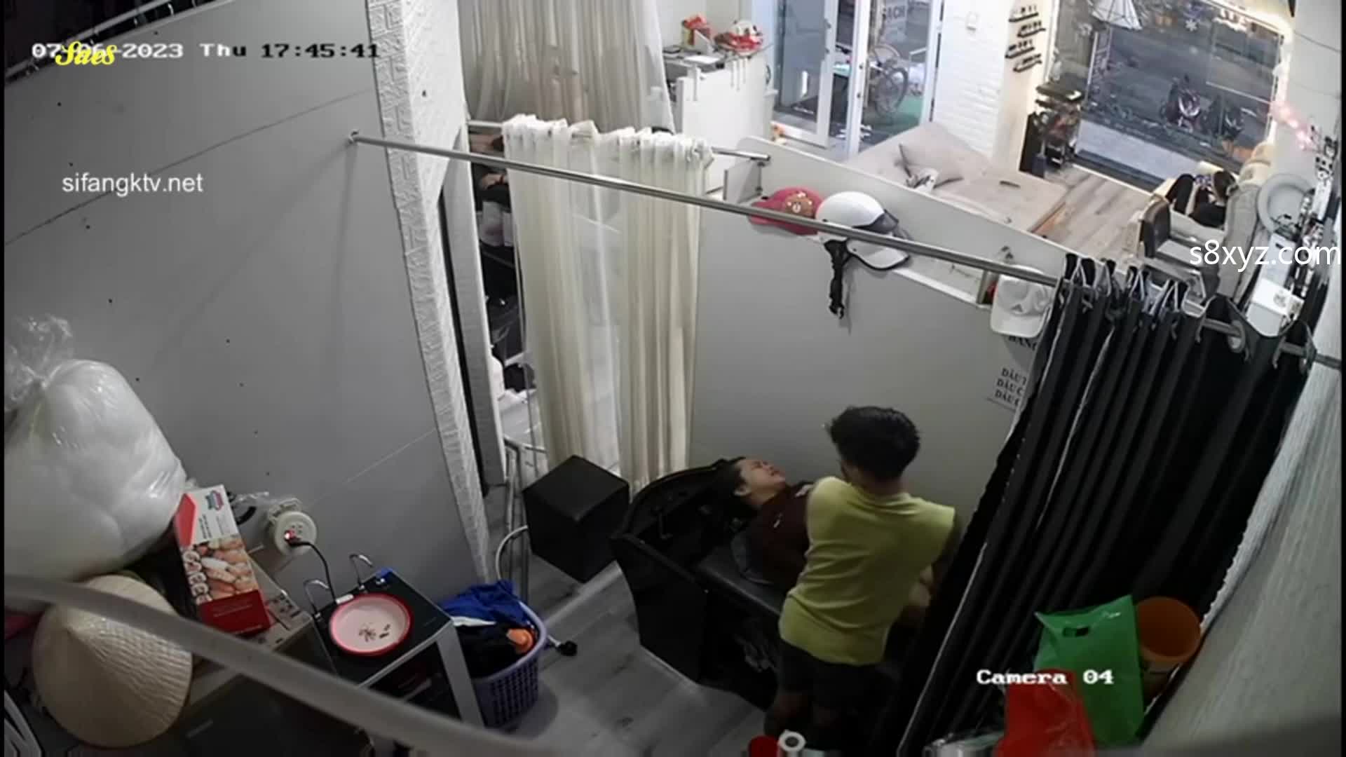 监控摄像头拍下少妇去发廊做头发被洗头小帅哥抓奶舔鲍好像感觉有点爽了。
